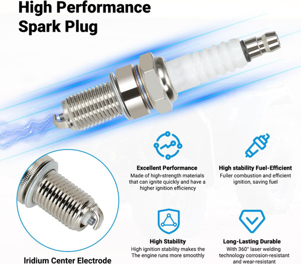 Crafted from high-quality materials with OEM-standard precision, these ignition coils deliver stronger voltage output, ensuring better combustion efficiency, smoother starts, and more reliable power. The included D8TC spark plugs with iridium center electrodes provide excellent conductivity and long-lasting durability.
